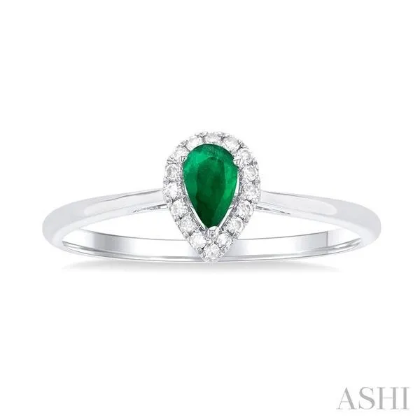 (319) 752-31965x3 MM Pear Shape Emerald and 1/20 Ctw Single Cut Diamond Halo Precious Ring in 10K White Gold