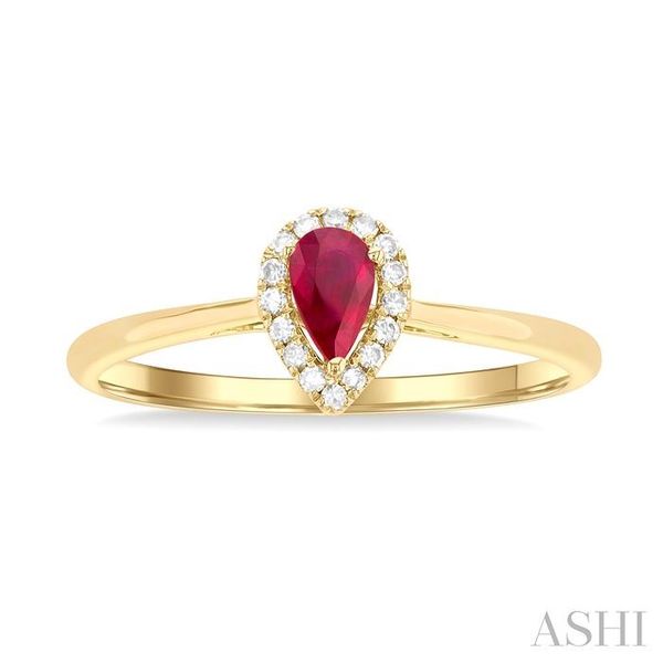 5x3 MM Pear Shape Ruby and 1/20 Ctw Round Cut Diamond Halo Precious Ring in 14K Yellow Gold Image 3 Becker's Jewelers Burlington, IA