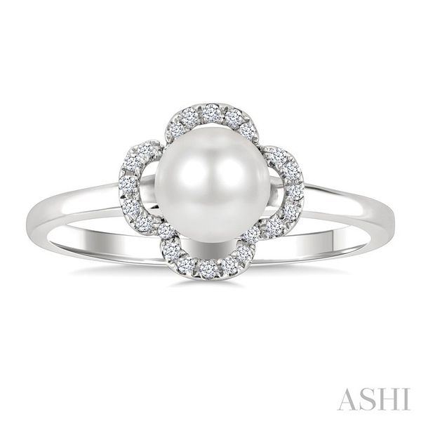 6 MM Cultured Pearl and 1/10 Ctw Round Cut Diamond Clover Petite Fashion Ring in 10K White Gold Image 2 Becker's Jewelers Burlington, IA