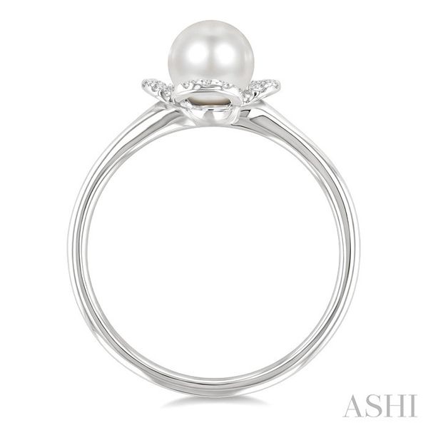 6 MM Cultured Pearl and 1/10 Ctw Round Cut Diamond Clover Petite Fashion Ring in 10K White Gold Image 3 Becker's Jewelers Burlington, IA