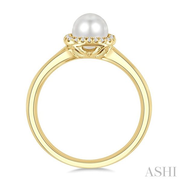 6 MM Cushion-Shaped Cultured Pearl and 1/10 Ctw Petite Round Cut Diamond Halo Ring in 10K Yellow Gold Image 3 Becker's Jewelers Burlington, IA