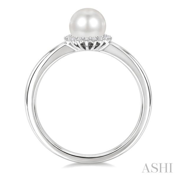 6 MM Round Shape Cultured Pearl and 1/10 Ctw Petite Round Cut Diamond Floral Halo Fashion Ring in 10K White Gold Image 3 Becker's Jewelers Burlington, IA