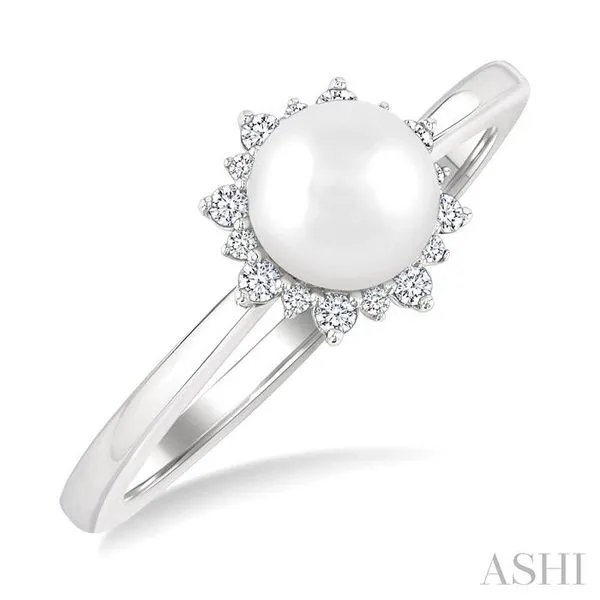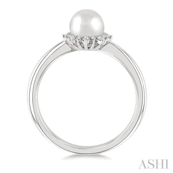 (319) 752-31966 MM Round Shape Cultured Pearl and 1/10 Ctw Petite Round Cut Diamond Sunburst Halo Fashion Ring in 10K White Gold