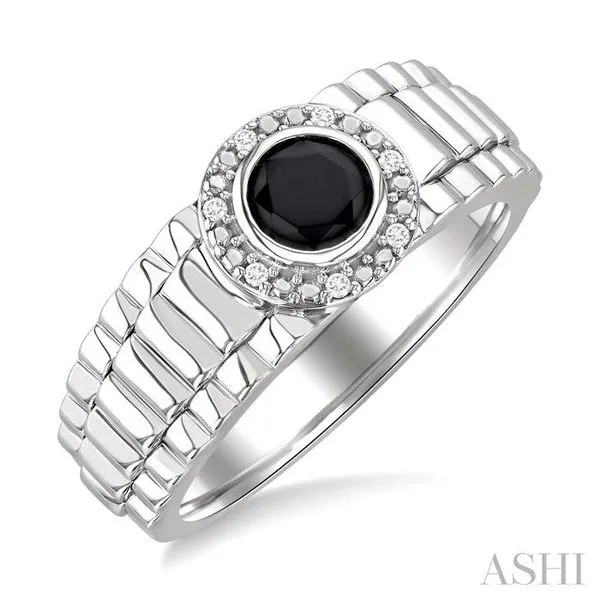 (319) 752-31966 MM Round Shape Onyx and 1/20 Ctw Single Cut Diamond Semi-precious Men's Ring in Sterling Silver