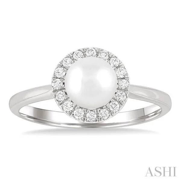 (319) 752-31966 MM White Cultured Pearl and 1/6 Ctw Round Cut Diamond Halo Ring in 10K White Gold