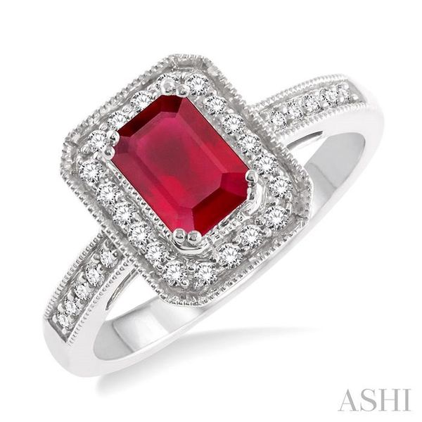 6x4 MM Emerald Shape Ruby and 1/4 Ctw Round Cut Diamond Ring in 14K White Gold Image 3 Becker's Jewelers Burlington, IA