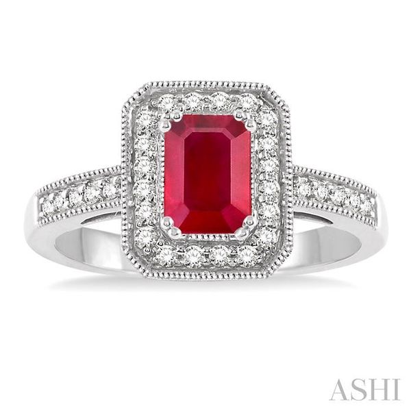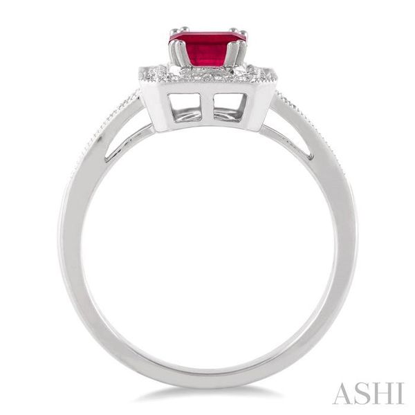 6x4 MM Emerald Shape Ruby and 1/4 Ctw Round Cut Diamond Ring in 14K White Gold Image 4 Becker's Jewelers Burlington, IA