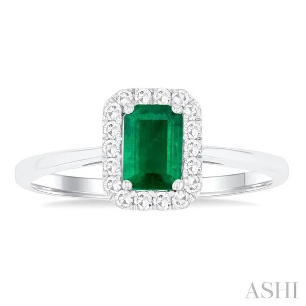 (319) 752-31966x4 MM Octagonal Shape Emerald and 1/6 Ctw Round Cut Diamond Halo Precious Ring in 10K White Gold