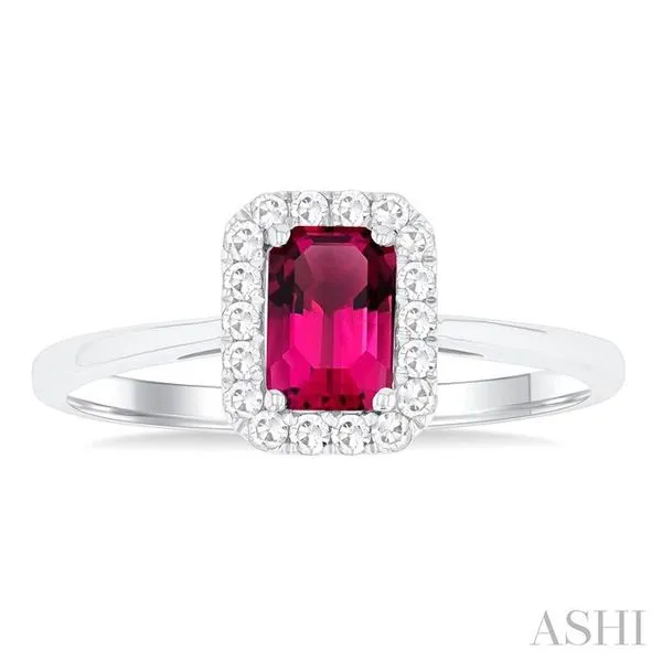 (319) 752-31966x4 MM Octagonal Shape Pink Tourmaline and 1/6 Ctw Round Cut Diamond Halo Semi-Precious Ring in 10K White Gold
