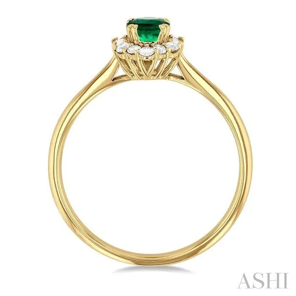 (319) 752-31966x4 MM Oval Cut Emerald and 1/5 Ctw Baguette & Round Cut Diamond Hexagon Shape Halo Precious Ring in 10K Yellow Gold