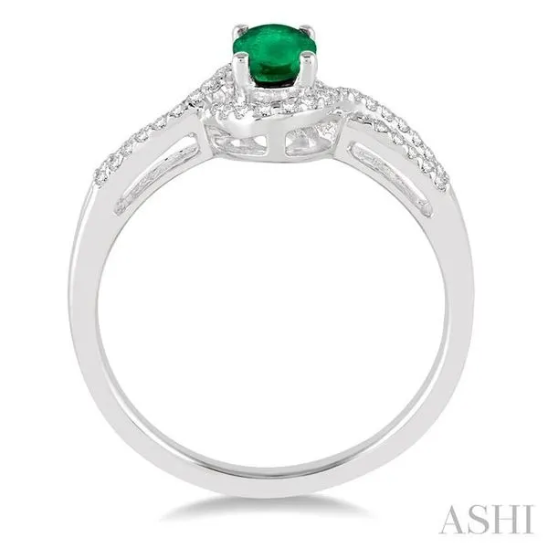 (319) 752-31966x4 MM Oval Cut Emerald and 1/6 Ctw Round Cut Diamond Ring in 10K White Gold