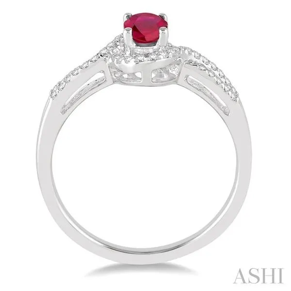 (319) 752-31966x4 MM Oval Cut Ruby and 1/6 Ctw Round Cut Diamond Ring in 10K White Gold