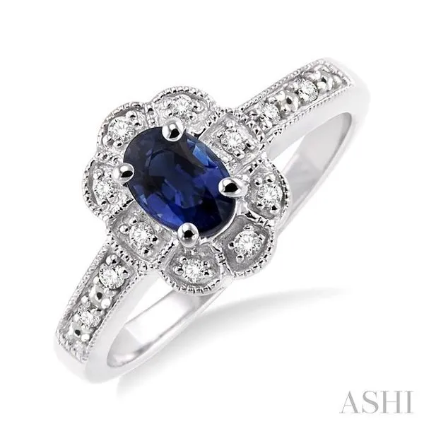 (319) 752-31966x4 MM Oval Cut Sapphire and 1/20 Ctw Single Cut Diamond Ring in Sterling Silver