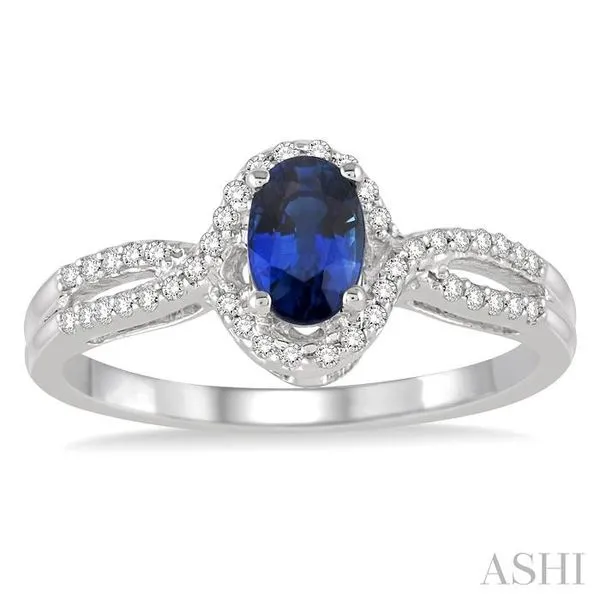 (319) 752-31966x4 MM Oval Cut Sapphire and 1/6 Ctw Round Cut Diamond Ring in 10K White Gold