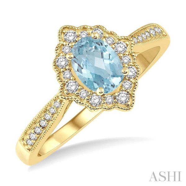 6x4 MM Oval Shape Aquamarine and 1/5 Ctw Round Cut Diamond Semi-Precious Ring in 10K Yellow Gold Image 2 Becker's Jewelers Burlington, IA