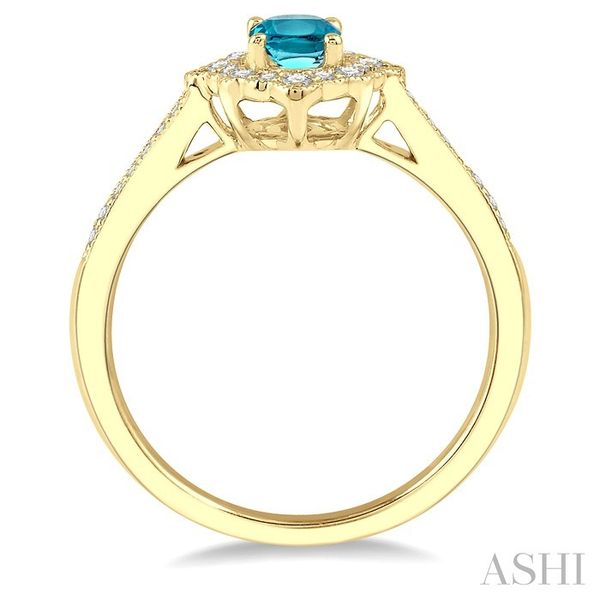 6x4 MM Oval Shape Aquamarine and 1/5 Ctw Round Cut Diamond Semi-Precious Ring in 10K Yellow Gold Image 3 Becker's Jewelers Burlington, IA