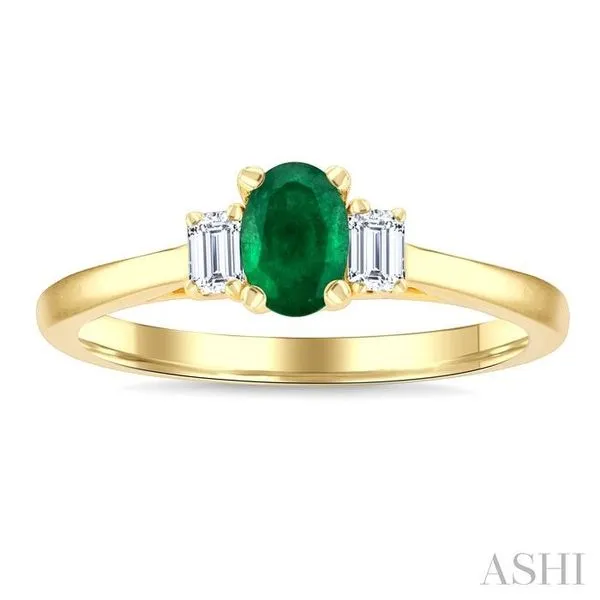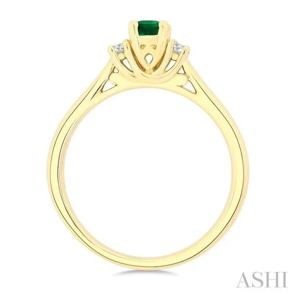 (319) 752-31966X4 MM Oval Shape Emerald and 1/5 Ctw Diamond 3-Stone Precious Ring in 14K Yellow Gold