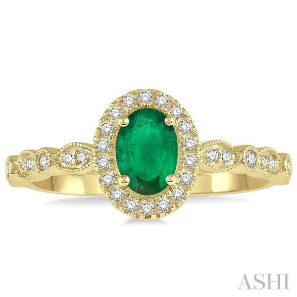 (319) 752-31966x4 MM Oval Shape Emerald and 1/6 Ctw Round Cut Diamond Precious Ring in 10K Yellow Gold