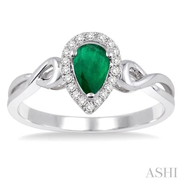(319) 752-31966x4 MM Pear Shape Emerald and 1/10 Ctw Round Cut Diamond Ring in 10K White Gold