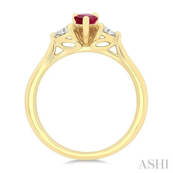 (319) 752-31966X4 MM Pear Shape Ruby and 1/5 Ctw Pear Cut Diamond 3-Stone Precious Ring in 14K Yellow Gold