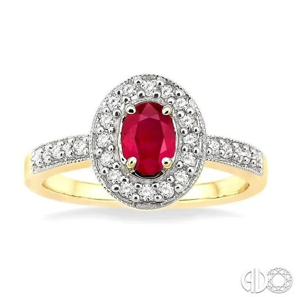 6x4mm Oval Cut Ruby and 1/4 Ctw Round Cut Diamond Ring in 14K Yellow Gold Image 2 Becker's Jewelers Burlington, IA