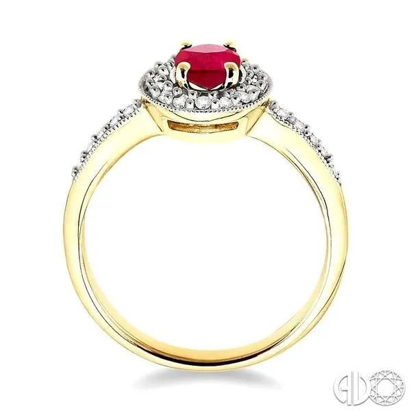 6x4mm Oval Cut Ruby and 1/4 Ctw Round Cut Diamond Ring in 14K Yellow Gold Image 4 Becker's Jewelers Burlington, IA