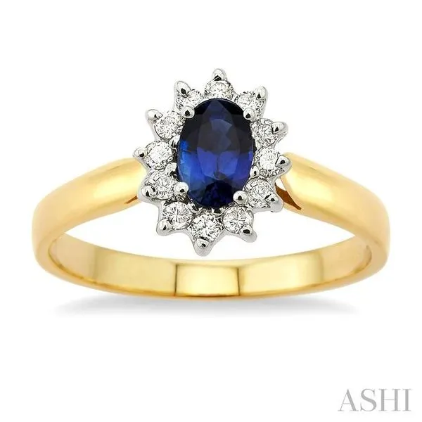 (319) 752-31966x4MM Oval Cut Sapphire and 1/5 Ctw Round Cut Diamond Ring in 14K Yellow Gold