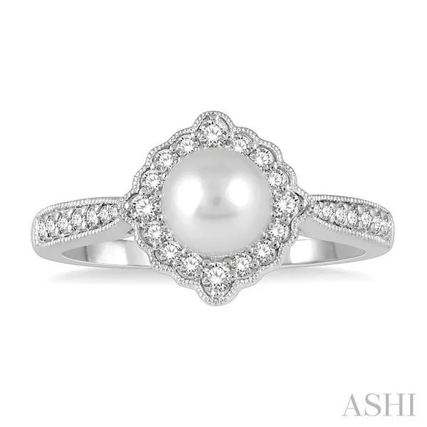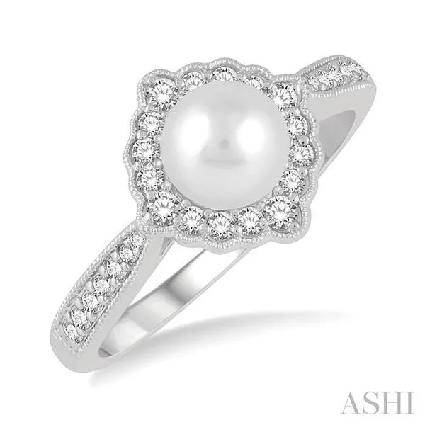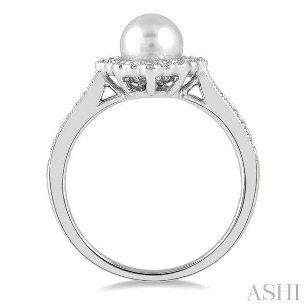 (319) 752-31967 MM Cultured Pearl and 1/4 Ctw Round Cut Diamond Halo Ring in 10K White Gold
