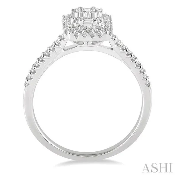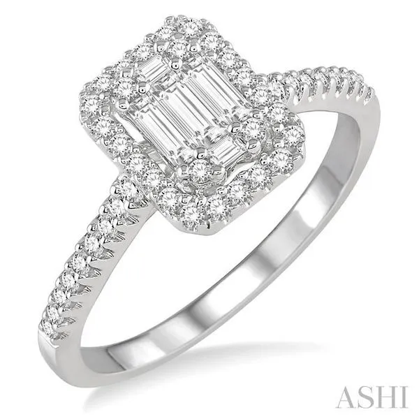 (319) 752-31967/8 Ctw Emerald Shape Baguette and Round Cut Diamond Ring in 14K White Gold