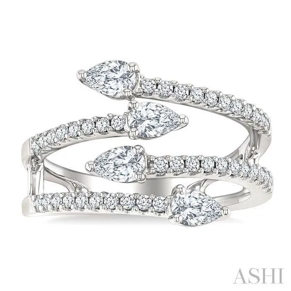 (319) 752-31967/8 Ctw Split Double Bypass Pear and Round Cut Diamond Open Fashion Ring in 14K White Gold