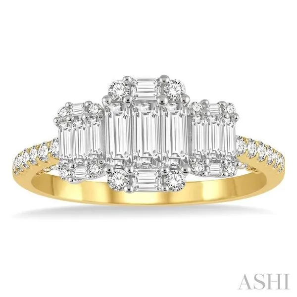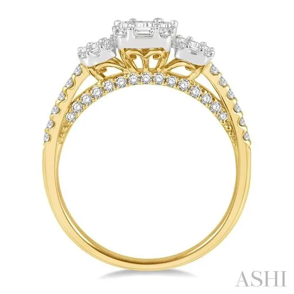 (319) 752-31967/8 Ctw Tri-Mount Fusion Baguette and Round Cut Diamond Engagement Ring in 14K Yellow and White gold