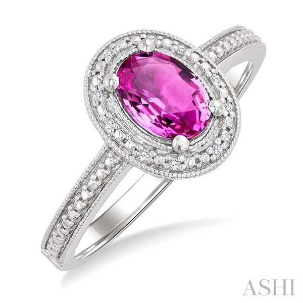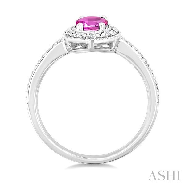 7X5 MM Oval Shape Lab-Created Pink Sapphire and 1/50 Ctw Round Cut Diamond Precious Ring in Sterling Silver Image 3 Becker's Jewelers Burlington, IA