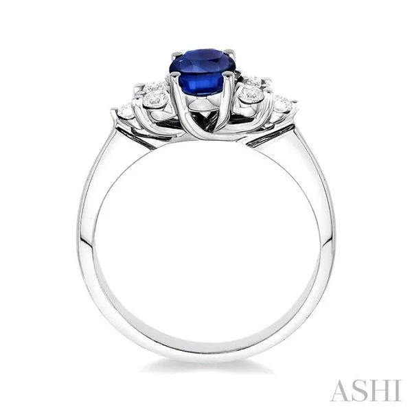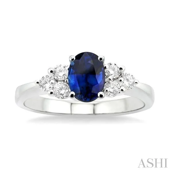 (319) 752-31967x5mm Oval Cut Sapphire and 1/3 Ctw Round Cut Diamond Ring in 14K White Gold