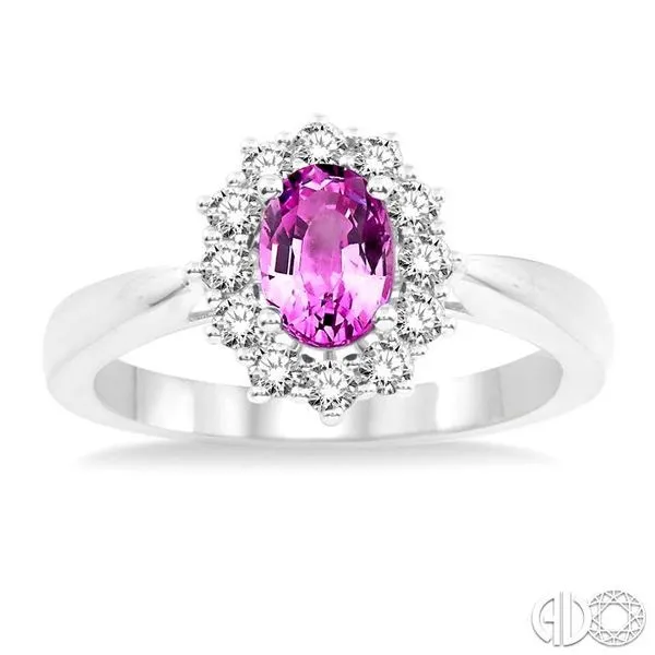 7X5mm Oval Shape Pink Sapphire and 1/3 Ctw Round Cut Diamond Ring in 14K White Gold Image 3 Becker's Jewelers Burlington, IA