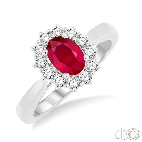 7X5mm Oval Shape Ruby and 1/3 Ctw Round Cut Diamond Ring in 14K White Gold Becker's Jewelers Burlington, IA