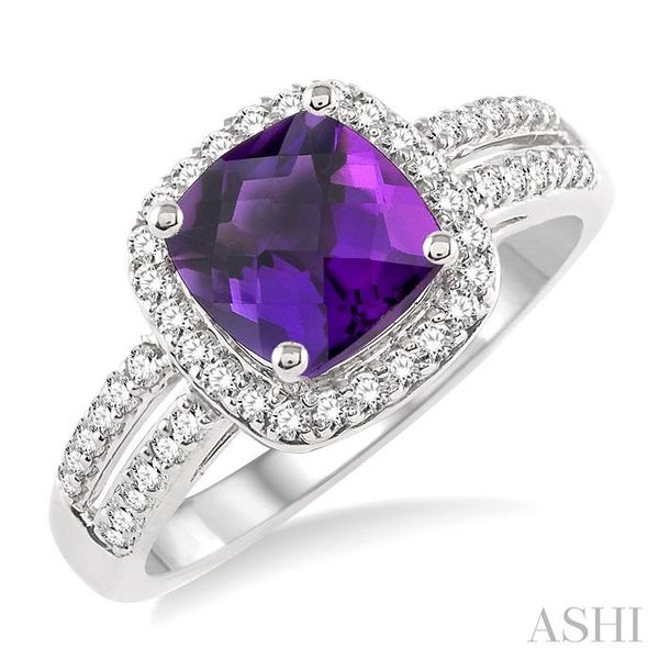 7x7 MM Cushion Shape Amethyst and 1/3 Ctw Round Cut Diamond Ring in 14K White Gold Image 4 Becker's Jewelers Burlington, IA