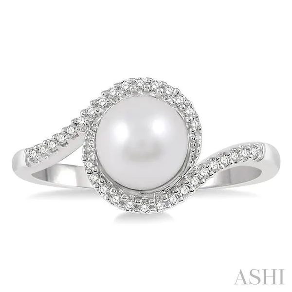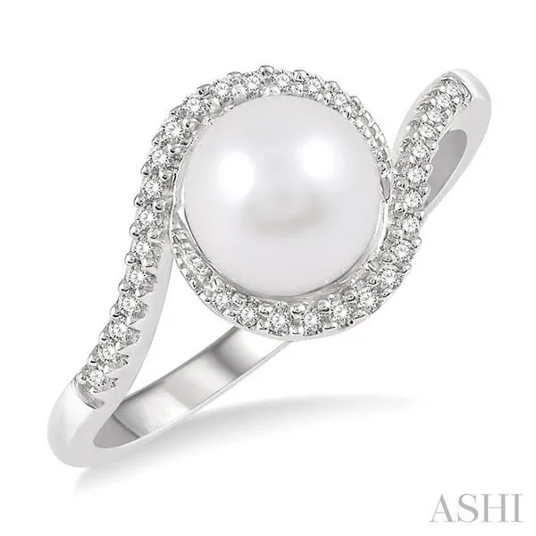 (319) 752-31967x7 MM Round Shape Cultured Pearl & 1/10 Ctw Round Cut Diamond Ring in 10K White Gold