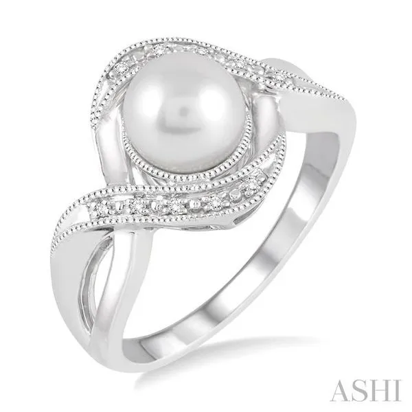 (319) 752-31967x7 MM Round Shape Cultured Pearl and 1/20 Ctw Round Cut Diamond Ring in Sterling Silver
