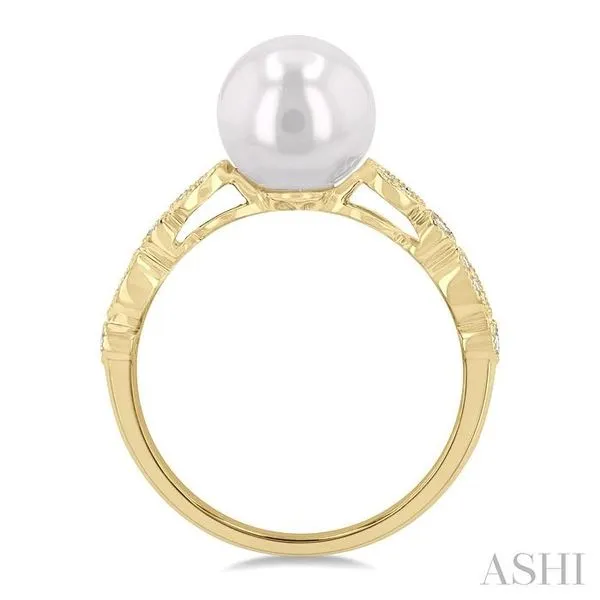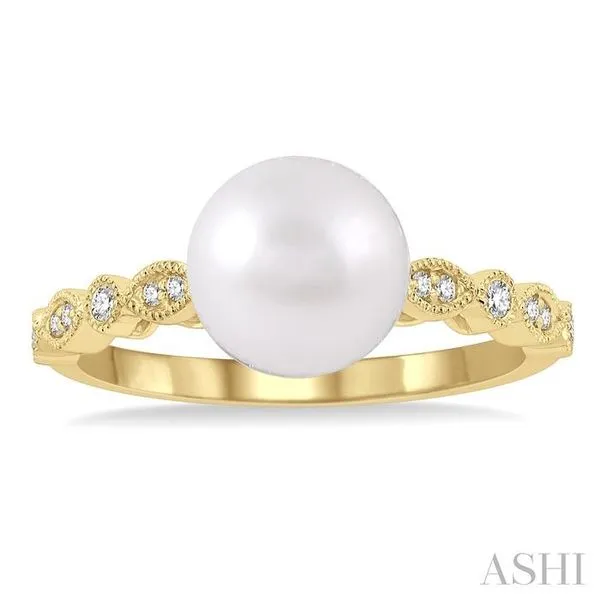 (319) 752-31968 MM Cultured Pearl and 1/10 Ctw Round Cut Diamond Ring in 14K Yellow Gold