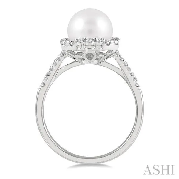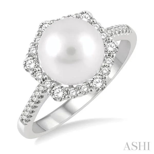 (319) 752-31968 MM Cultured Pearl and 1/3 Ctw Hexagon Shape Round Cut Diamond Ring in 14K White Gold