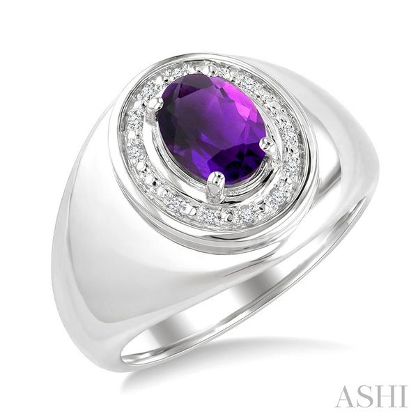 8X6 MM Oval Shape Amethyst and 1/20 Ctw Round Cut Diamond Semi-Precious Ring in Sterling Silver Becker's Jewelers Burlington, IA