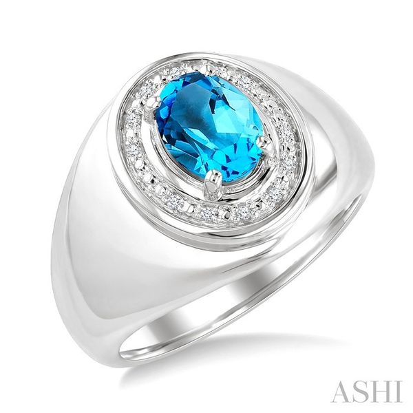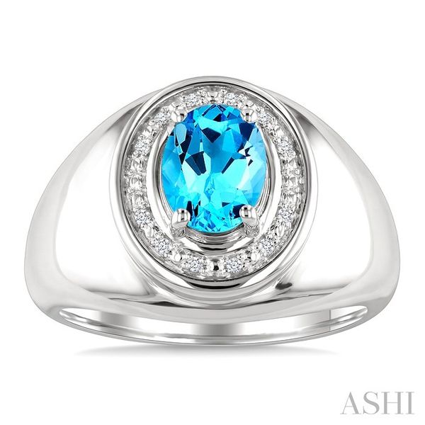 8X6 MM Oval Shape Blue Topaz and 1/20 Ctw Round Cut Diamond Semi-Precious Ring in Sterling Silver Image 2 Becker's Jewelers Burlington, IA