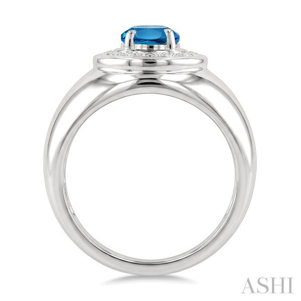 8X6 MM Oval Shape Blue Topaz and 1/20 Ctw Round Cut Diamond Semi-Precious Ring in Sterling Silver Image 3 Becker's Jewelers Burlington, IA
