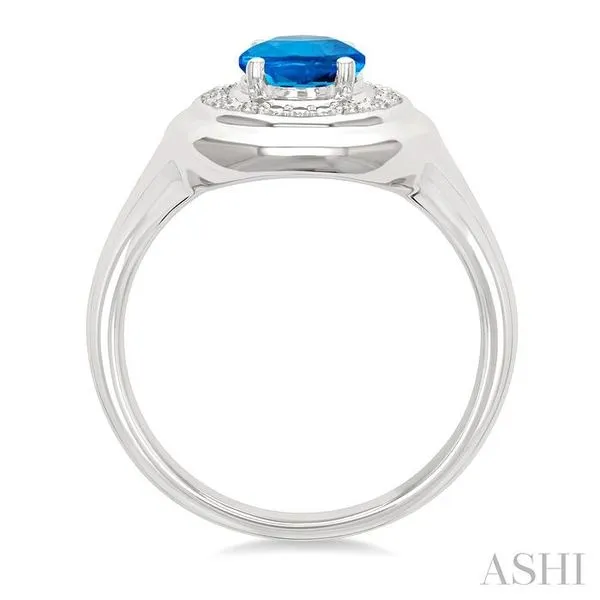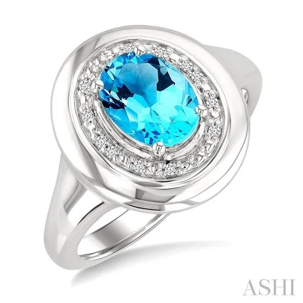 (319) 752-31968x6 MM Oval Shape Blue Topaz and 1/20 Ctw Single Cut Diamond Semi-precious Ring in Sterling Silver