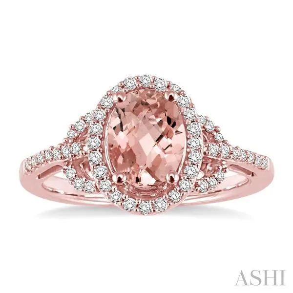 (319) 752-31968x6MM Oval Cut Morganite and 1/3 Ctw Round Cut Diamond Ring in 14K Rose Gold