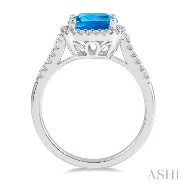 (319) 752-31968x8 MM Cushion Shape Center Stone Blue Topaz and 1/5 Ctw Cushion Shape Mount Round Cut Diamond Semi-Precious Ring in 10K White Gold