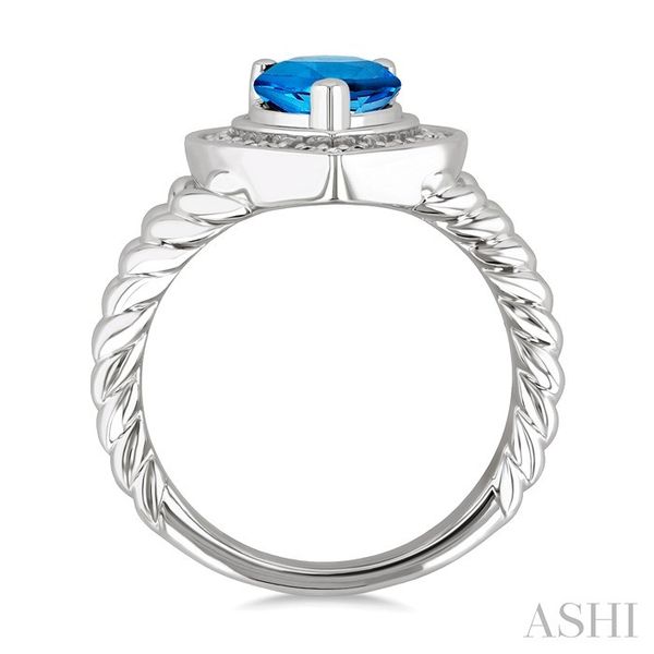 9X6 MM Pear Shape Blue Topaz and 1/20 Ctw Round Cut Diamond Semi-Precious Ring in Sterling Silver Image 2 Becker's Jewelers Burlington, IA