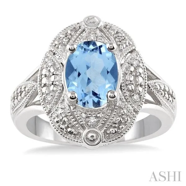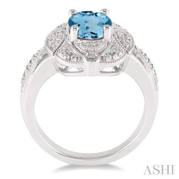 (319) 752-31969x7 MM Oval Cut Blue Topaz and 1/50 Ctw Single Cut Diamond Ring in Sterling Silver