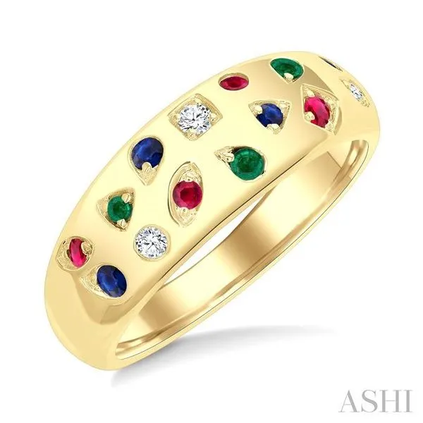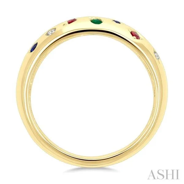(319) 752-3196Mixed Shape Gemstone and 1/20 Ctw Round Cut Diamond Mosaic Precious Wide Fashion Band in 14K Yellow Gold
